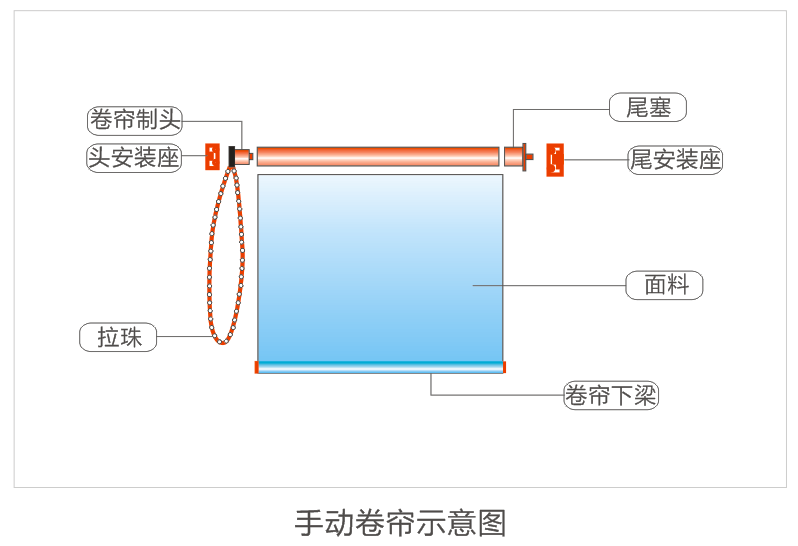 手動噴繪好色先生网站主要是由卷管,麵料,尾插,製頭,下杆,封頭,尾碼,拉珠等組成。拉珠好色先生网站機構的控製部分是一種利用卷簧扭轉時,能單向控製被動軸實行回轉運動的機械原理而調製的一種機構。此機構隻要在卷管荷重範圍內,保證簾布不會因自重而下滑,人工操作拉珠傳動部分,簾布便會上升或下降,動作平滑穩定。